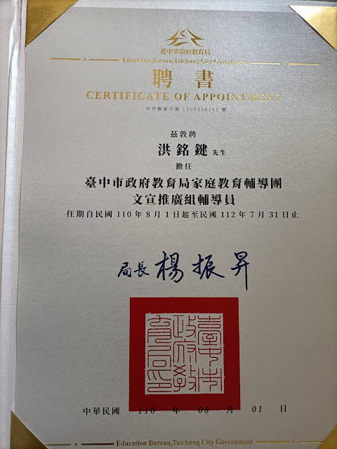 自100年加入臺中縣家庭教育輔導團至今,已邁入第11個年頭,從創團、評鑑、到校輔導、教案比賽、電子報、各項甄選評比……無役不與,那怕歷經縣市合併與各項教育政策的變革,家教團的能量不減反增!有幸在家教團裡學習、成長與付出,感謝很多貴人的提攜與指導,要謝的人太多,那就謝天吧!
